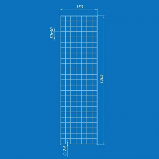 Дисплей сітка для торгівлі 1200х350 мм, комірка 50х50 мм, D2,5 мм, чорний