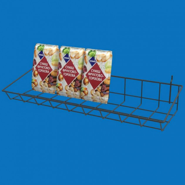 Сітчаста корзина призначена для зручного розміщення товарів на перфорованих стендах і стійках. Завдяки компактним розмірам 500х180 мм вона підходить для використання у торгових залах, магазинах, майстернях та на складах.