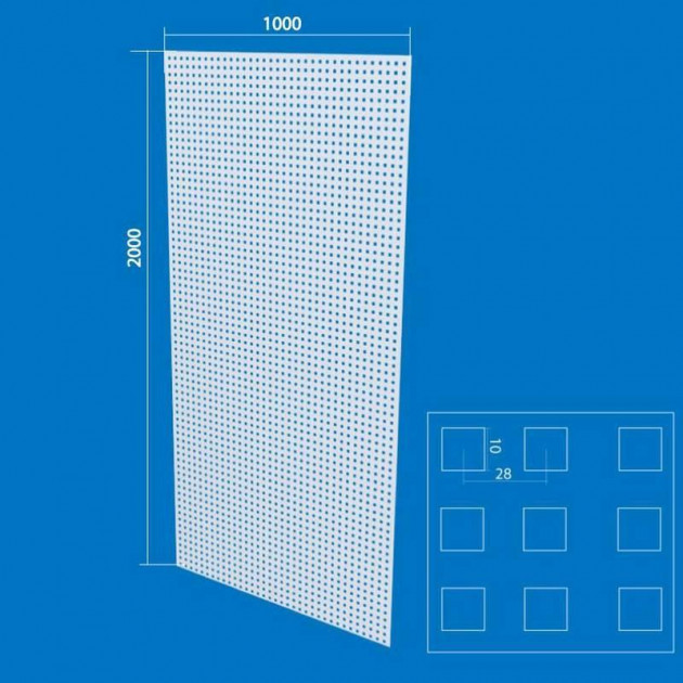 Перфорований лист для інструментів пофарбований 100х200, осередок 10х10 (S-1 мм)