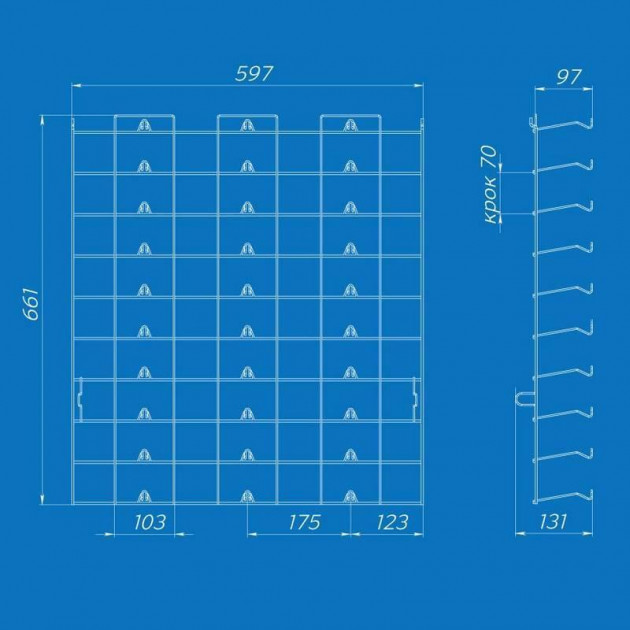 Секція для торгівлі вітрини під окуляри з крючками до стелажу'Єва-60'