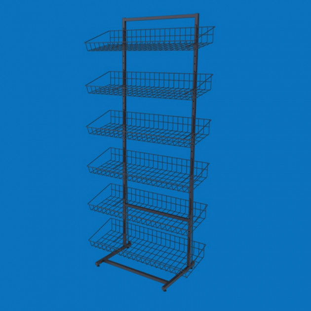 Шість кошиків надають зручний простір для розміщення товарів, забезпечуючи прекрасну видимість і легкий доступ. Це ідеальне рішення для впорядкованого і привабливого відображення товарів.
