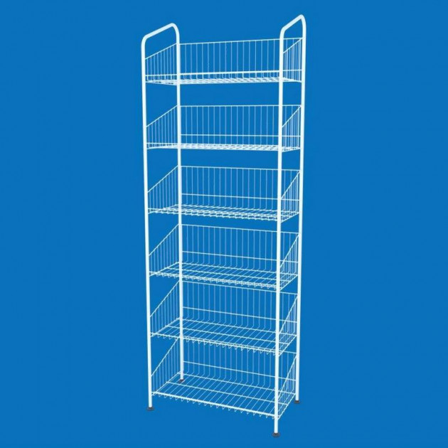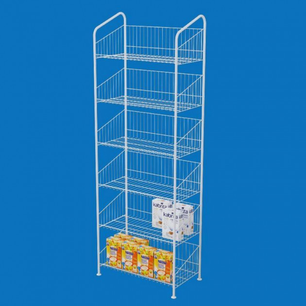 Стелаж із сітчастими полицями шириною 650 міліметрів,модульний для торгових приміщень та побутових потреб складається з 6 ярусів та призначений для розміщення різного товару.