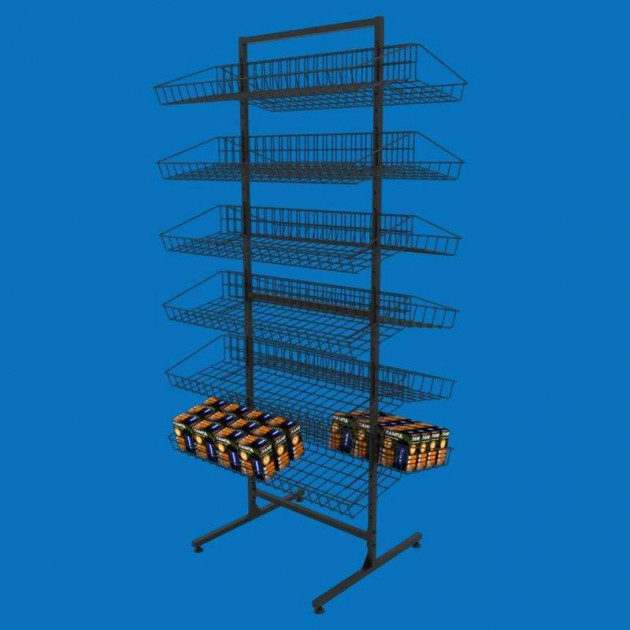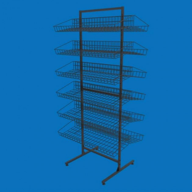 Торговий сітчастий стелаж з похилими кошиками «Єва-60» двосторонній у чорному кольорі - це стильне і функціональне рішення для оформлення вашого торгового простору. Міцна металева конструкція і лаконічний чорний колір роблять цей стелаж ідеальним вибором для демонстрації найрізноманітніших товарів, від продуктів харчування і побутової хімії до аксесуарів і промислових товарів.