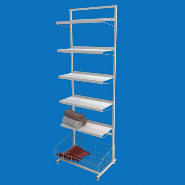 Торговий стелаж Ева з п'ятьма листовими полицями і 1 сітчастою накопичувальною корзиною