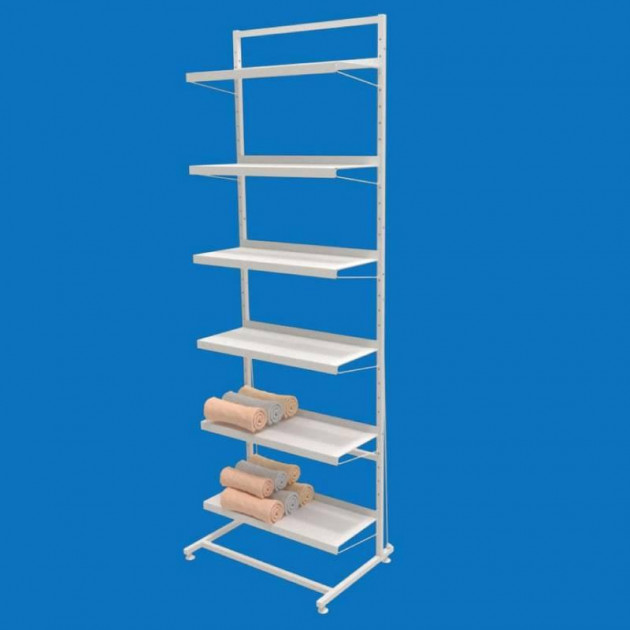 Зручний і практичний стелаж для магазинів, торгових точок, виставкових залів і складів. Оснащений 6 міцними металевими полицями, що витримують значні навантаження. Підходить для викладки будь-яких товарів: продукти, побутова хімія, одяг, аксесуари, канцтовари.