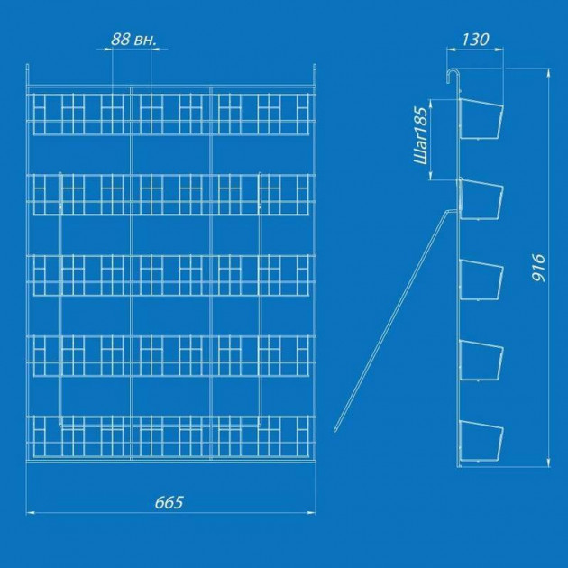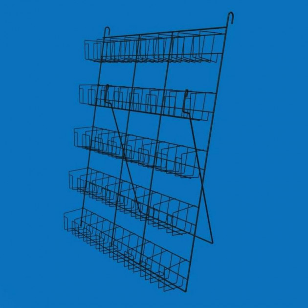 Компактний і зручний стенд, призначений для демонстрації та продажу фасованого насіння, спецій та інших товарів. Має 35 широких кишень, розташованих на 5 сітчастих полицях (по 7 кишень у кожному ярусі).