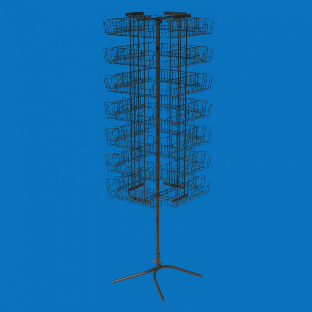 Стійка встановлюється на підлогу і підходить для супермаркетів, садових центрів, магазинів товарів для саду та городу, а також для острівних торгових точок. Завдяки обертовому механізму покупці можуть легко переглядати весь асортимент з усіх боків.