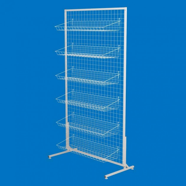Стійка-сітка 100х180 з кошиками 85х25 (6 штук), біла