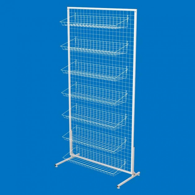 Стійка-сітка 100х200 з кошиками 85х25 (7 штук), біла
