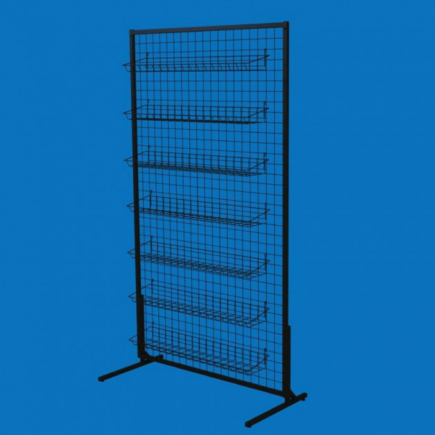 Стійка-сітка 100х180 з кошиками 85х15 (7 штук), чорна