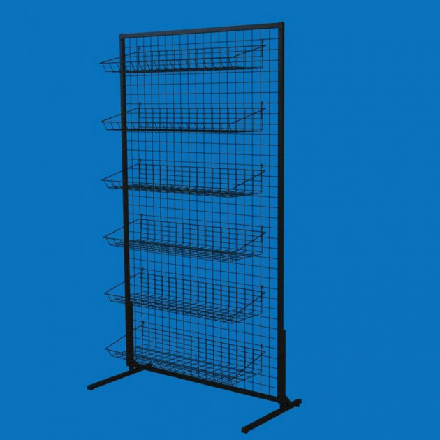 Стійка-сітка 100х180 з кошиками 85х25 (6 штук), чорна