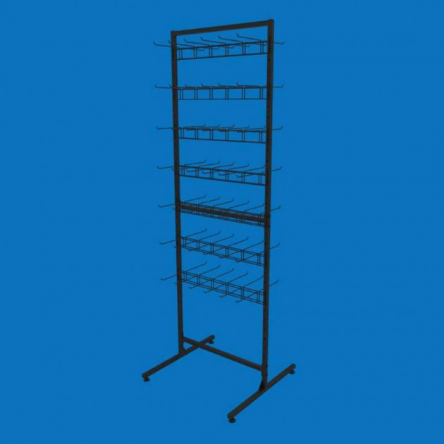 Стійка торгова Ева-60 двостороння на 14 секцій одинарних гачків, чорна