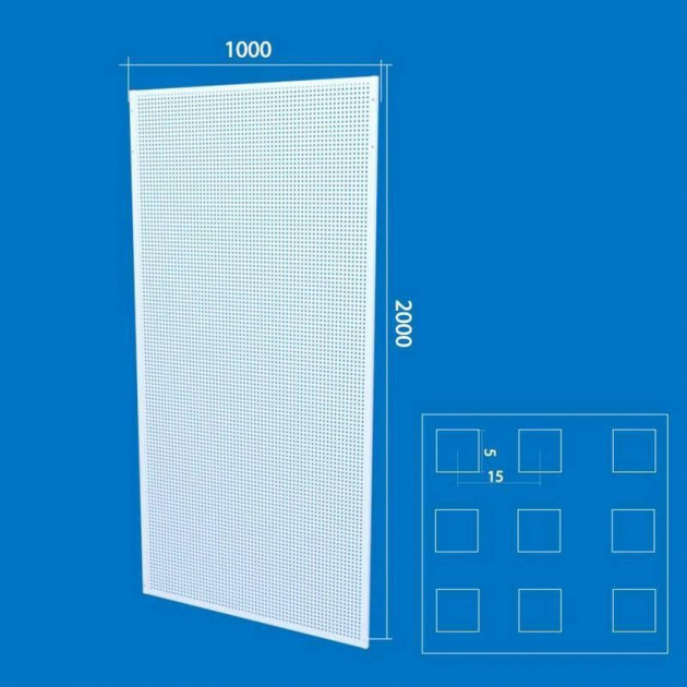 Торгова панель з перфорацією це універсальне торговельне обладнання, призначене для зручного та ефективного розміщення товарів за допомогою навісних елементів. Панель виготовлена з міцного металевого матеріалу і покрита захисним шаром, що забезпечує довговічність і стійкість до механічних пошкоджень. Перфорація дає змогу легко і швидко змінювати розташування гачків, полиць та інших елементів, що робить панель дуже гнучкою у використанні.