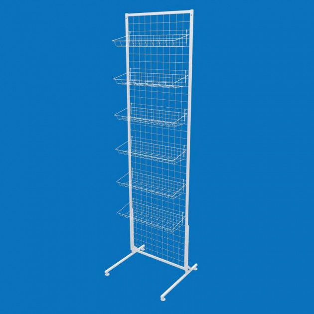 Біла торгова стійка-сітка з 6 навісними кошиками