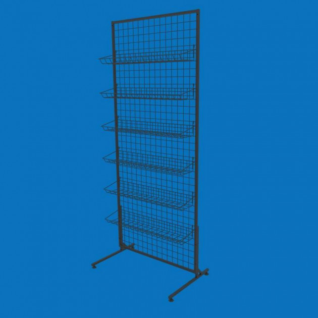 Універсальна стійка з сітчастою основою і 6 знімними кошиками — це функціональне торговельне обладнання, створене для компактної і наочної викладки товару. Завдяки стійкій металевій конструкції і модульності, її легко адаптувати під різні завдання і типи продукції.