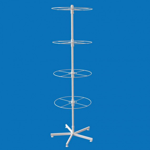 Металева підлогова стійка з чотирма обертовими кільцями — зручне рішення для розміщення дрібних товарів: шкарпеток, ременів, пакетів та інших аксесуарів.