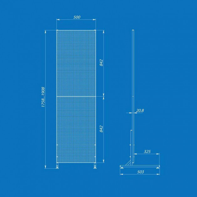 Торгова стійка перфорована 50х185, розбірна, S-0,8 мм