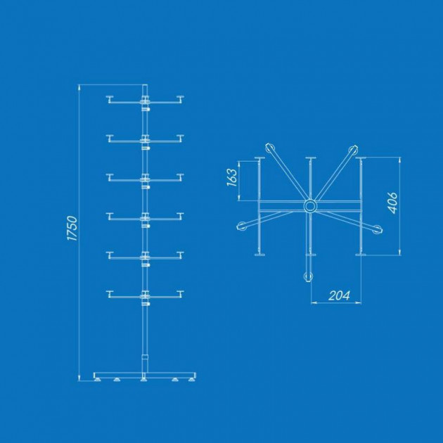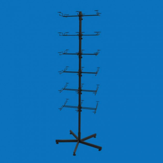 Модель обладнана 6 ярусами одинарних гачків. Усі яруси обертаються навколо центральної осі, забезпечуючи легкий доступ до продукції з усіх боків.