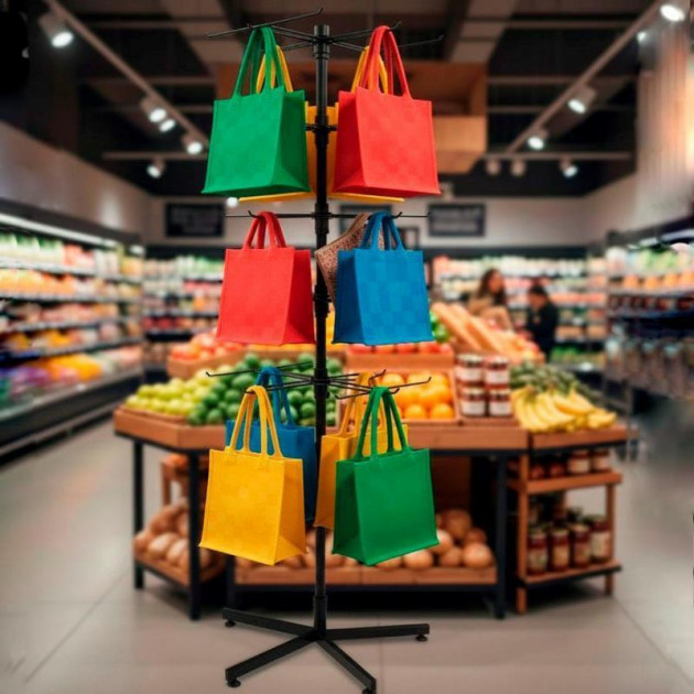 Універсальна металева стійка призначена для презентації та продажу дрібних товарів: аксесуарів, біжутерії, упаковки, швейної фурнітури, іграшок та інших виробів. Підходить для магазинів, ринків, торгових острівців і тимчасових виставок.